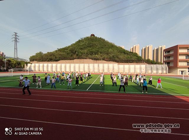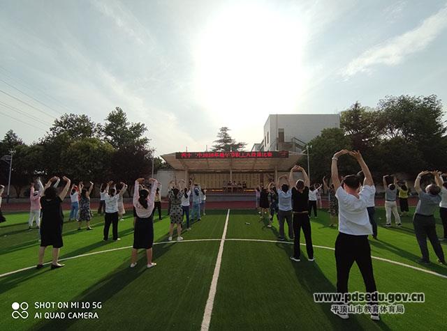 2020年5月28日下午第二节一下课,市四十二中的全体教职工就已在操场集合等候,参加市四十二中举行的教职工八段锦气功操比赛,校领导班子及全体教职工参加比赛。