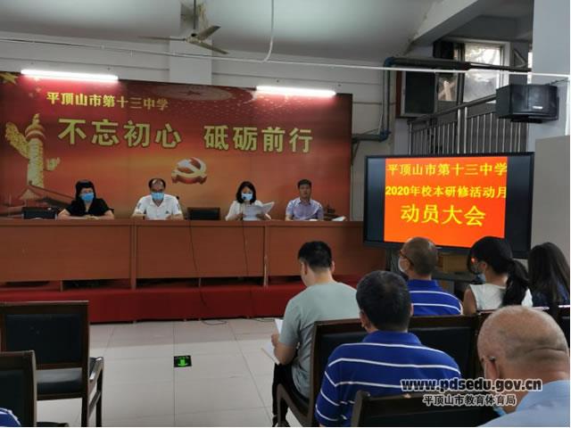 按照《市十三中2020年“校本研修活动月”实施方案》,在动员会上,郭艺伟强调,本次活动的主题是“聚焦高效课堂、强化梯队培养、引领特色成长”。活动内容一是全员学习。二是梯级展示、推动青蓝工程,助推教师成长。三是校本课程创编,以备课组为单位对导学案进行补充和修订,同时每周四上午安排全体教师进行集体备课,讨论下一周的教学安排;四是教育信息化在校本研修中的深度应用。五是阅读教育专著,提升理论水平;六是举办名家讲座,借鉴优秀经验;七是研讨中招试题,提高教学实效;八是开展课题研究,提高教学科研能力。