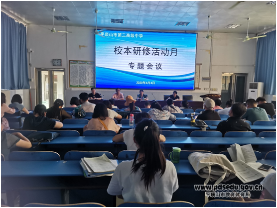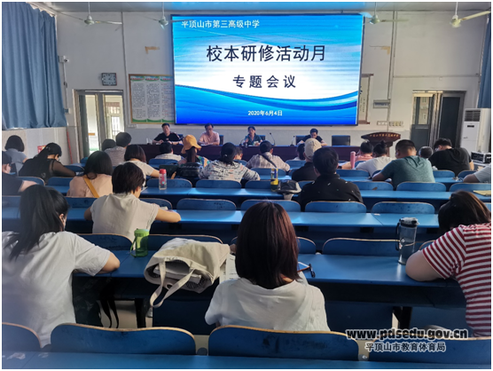 6月4日下午,市三高在报告厅召开了校本研修活动月专题会议,副校长周素娟、教务处主任杨勇、信息中心主任周兵杰、各学科教研组长及各年级备课组长参加会议,会议由教科室主任黄勇主持。