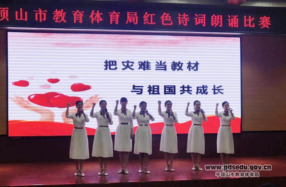一场疫情,一次考验,一节大课。为进一步坚定党员干部的理想信念,推进“不忘初心 牢记使命”主题教育常态长效,6月5日下午,平东幼儿园选出七名党员同志,参加了市教育体育局举办的红色诗词朗诵复赛活动,为中国共产党成立99周年献礼。