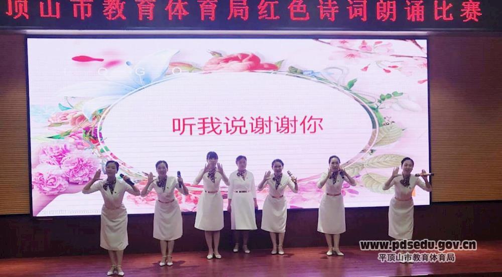 此次活动,平东幼儿园高度重视,从内容的选取、赛前的准备、形式的编排等方面,精心创作,认真编排。参赛过程中,7名党员教师和一名小朋友以饱满的热情、别样的方式,为大家献上自创诗词作品《别样战疫守初心》。舞台上令人感动的情景表演、振奋人心的故事讲述,欢快优美的歌声,让台下的观众为之感动,掌声此起彼伏。