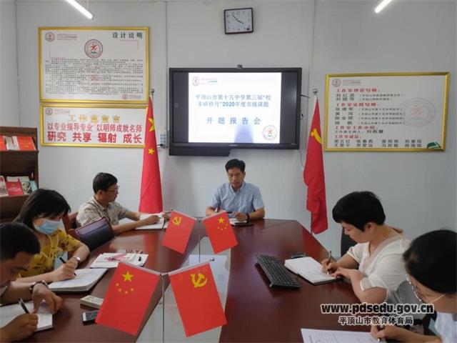经过数次紧锣密鼓的筹划和准备工作,市十五中于6月8日开展了第三届“校本研修月”2020年度市级课题开题报告会。