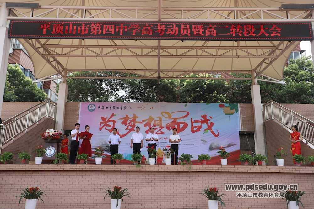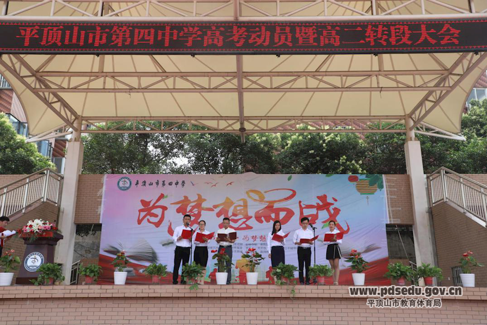 6月10日上午,平顶山市四中操场上横幅盈目,鼓声震天,平顶山市第四中学2020年高考动员暨高二年级转段大会在此隆重举行,校班子成员及全体师生参加此次大会。