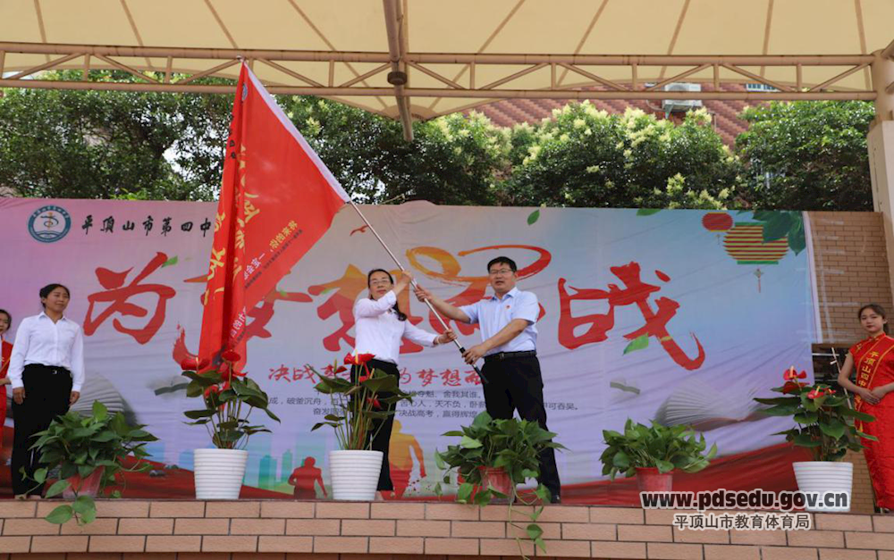 在群情激昂的热烈气氛中,校长杨全军把新高三转段战旗授予高二年级长韩红,希望高二师生把不怕困难、敢拼敢闯的高三精神传承下去,以昂扬的斗志迎接2021年高考的挑战。高二高三两个年级的同学们也互赠祝福旗,表达彼此美好的祝愿。