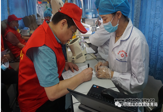 献血现场,市教体局党组成员、副局长苏红英带领志愿者们井然有序地排队等待,依次进行信息登记、血压测量、血液类型检验和静脉采血,整个流程有条不紊。排队登记信息期间,志愿者们紧张而兴奋,其中不乏参加过多次献血活动的志愿者,但是他们仍旧为自己的行动能给需要的人提供帮助、挽救更多的生命而感到高兴。谈及献血的动力,张诚说:“无偿献血是爱心公益活动,是每个公民应尽的义务,更是我们党员奉献精神、担当为民的一项具体表现,能够参加这样的公益活动,是一件光荣而自豪的事情,以后我会继续参加无偿献血活动,传递爱心。”
