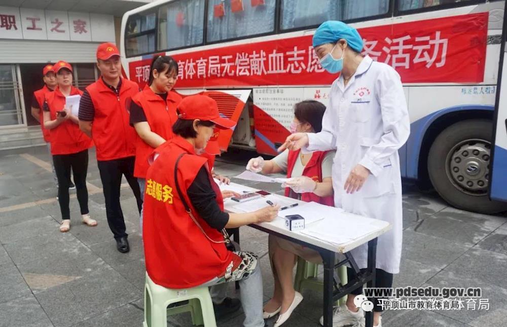 为迎接第17个世界献血者日的到来,6月12日上午,平顶山市教育体育局开展无偿献血志愿服务活动,市教体局机关干部职工踊跃参与。