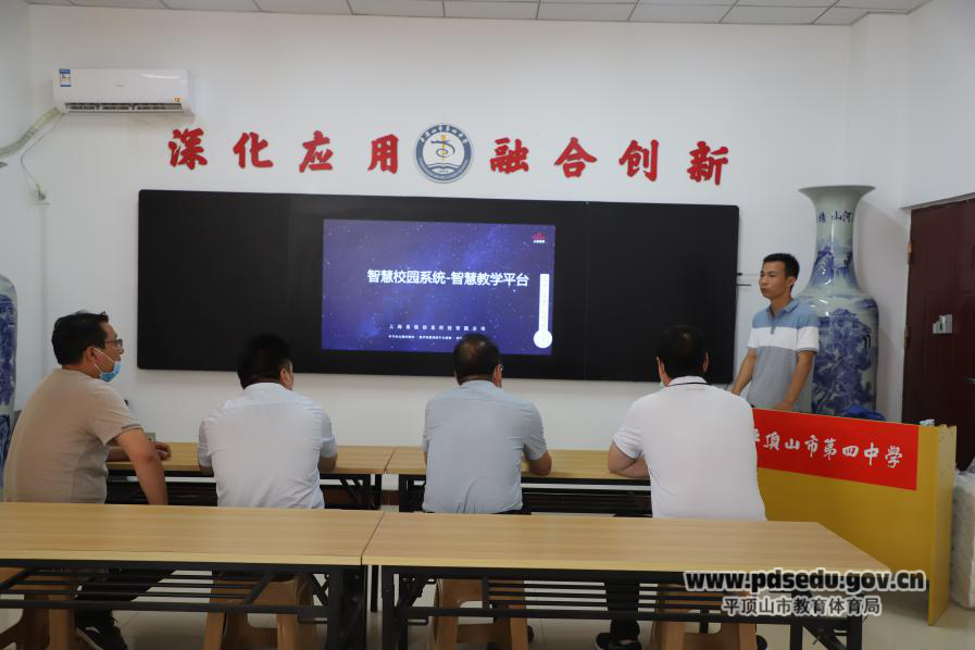 在“一对一平板教学”研讨交流中,市四中校长杨全军向来访嘉宾详细介绍了学校全面推进智慧校园建设的历程,副校长范登河针对智慧校园建设成效、互联网+下的高效课堂等内容与来访教师们进行了座谈交流。