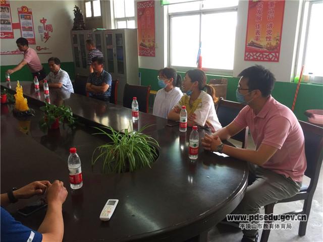 支教教师的工作表现关系到学校的形象,支教教师的生活同样牵动着学校领导的心。6月23日上午,在校长杨海兵,副校长王学东的带领下,经过大概半小时的车程到达了鲁山县第二初级中学看望到该校支教的陈颢阳和张梦月老师,为她送去学校的美好祝福和生活日用品,并与受援学校鲁山县第二初级中学校长进行了交流。