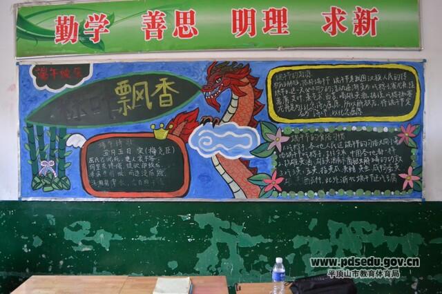端午节是中国的传统节日,在一年一度的传统节日端午节来临之际,市实验中学开展“庆祝端午节”黑板报评比活动。