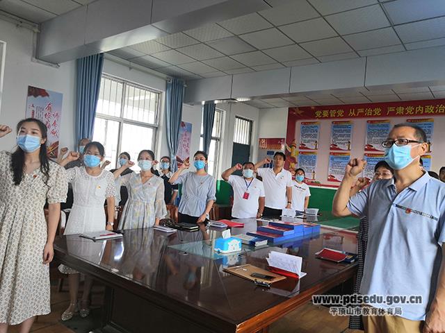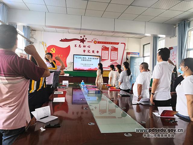 为庆祝中国共产党成立99周年,进一步巩固拓展主题教育成果,引导广大党员深入学习党的理论,在工作中担当作为,当好表率。根据市委组织部,教体局党组通知精神,6月30日上午,市十四中党支部在党员活动室开展了以“牢记初心使命、争当出彩先锋”为主题的主题党日活动。党支部书记刘彩虹主持会议。