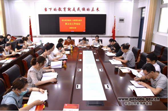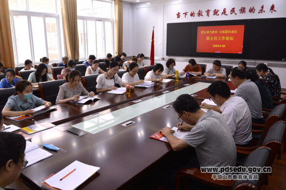 六月三十日下午市四十四中的二楼会议室气氛活跃,这是该校正在举行以“把灾难当教材与祖国共成长”为主题的第九届班主任论坛。校长张宏伟、副校长段国峰、王玲、校长助理王华伦、政教主任肖华和全体班主任老师共同参加了本次论坛,论坛由王玲主持。