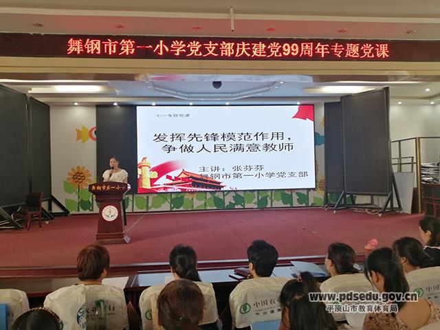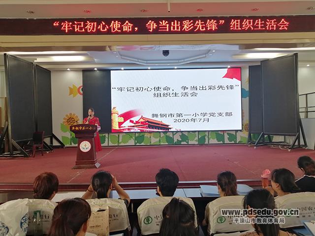 6月30日下午5点,舞钢市第一小学党支部,以庆祝建党99周年为契机,以“牢记初心使命、争当出彩先锋”为主题,开展支部党日活动,引导广大党员在深入学习领会党的创新理论中筑牢信仰之基,在重温党的光辉历史和优良传统中补足精神之钙,在接受红色教育、传承红色基因中砥砺初心使命,在严格党的组织生活、勇于自我革命中锤炼坚强党性,更加自觉地为实现新时代党的历史使命不懈奋斗。
