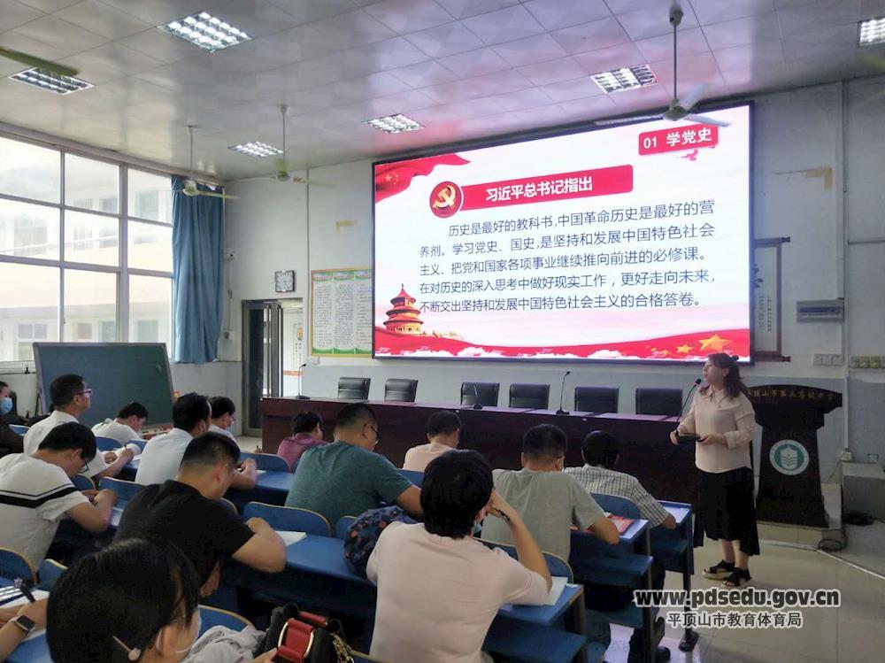 校长助理谢军均作了《在疫情中领悟党史,牢记初心使命》的专题党课,党课围绕学习党的历史做担当使命明白人、战疫情牢记初心使命争做先锋两个方面进行论述。张羽汐老师以《不忘初心担使命 “疫”路相伴三高人》为题,进行党的创新理论宣讲。
