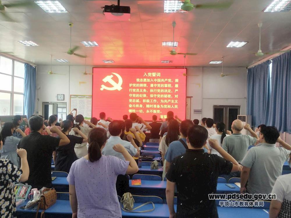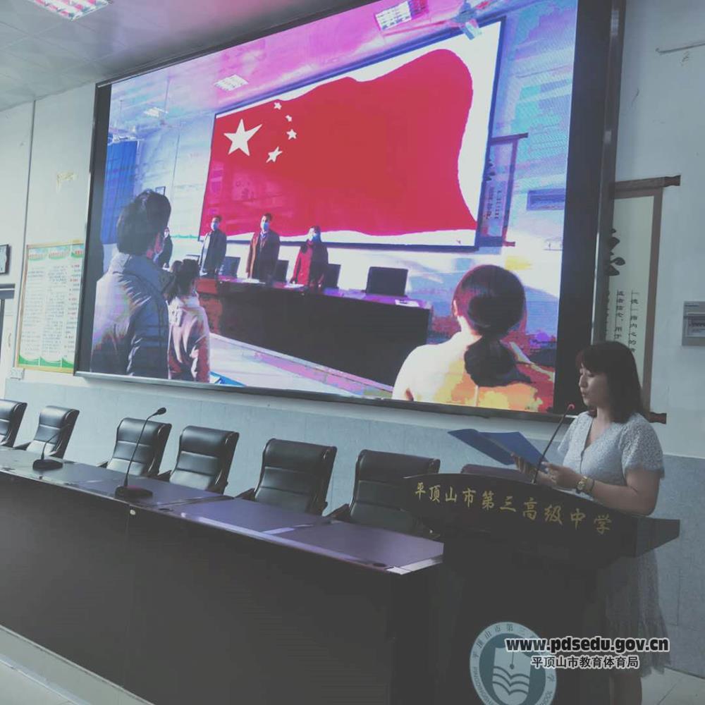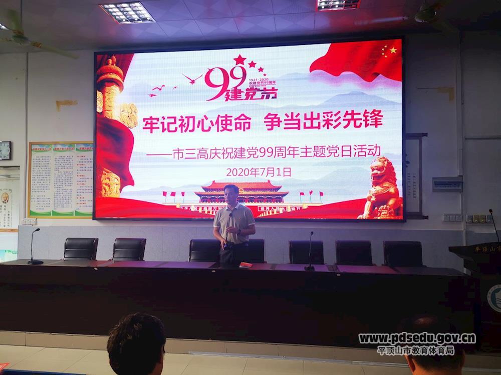 7月1日下午,市三高党总支在报告厅隆重举行了“牢记初心使命,争当出彩先锋”主题党日活动,表彰先进,热烈庆祝中国共产党成立九十九周年。全体党员参加了活动。