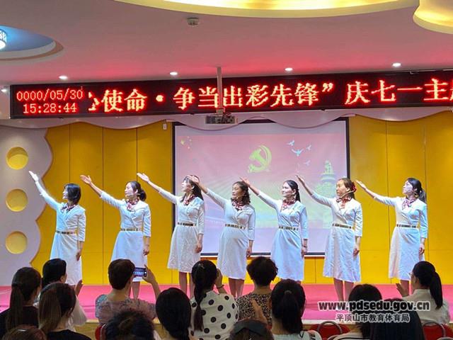 书记赵惠芳为本次活动致辞,她强调,我们要筑牢信仰之基,在党的光辉历史和优良传统中补足精神之钙,在接受红色教育和传承传统文化的基因中砥砺前行。接着,表彰了本年度表现突出的党员和团员,并为她们颁发了荣誉证书和奖品,党员代表周佩佩和团员代表白雪鸽进行精彩发言。随后,党员及青年教师分别为大家献上精彩的节目:歌舞类节目“党的赞歌”;古诗朗诵“传承经典 守望初心”……动人的舞姿、优美的音乐、感人的话语,让在座的每位老师仿佛走近了红色传统文化的殿堂,一起追忆党的光辉历程,共同感受党之伟大,国之坚强。“万水千山不忘来时路,鲜血浇灌出花开的国度,生死相依只为了那一句承诺,报答你是我唯一的倾诉……”最后,活动在优美动听的声音中落下帷幕。