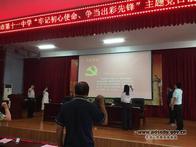 为庆祝中国共产党成立99周年,6月30日下午两节课后,市十一中党支部在阶梯教室组织开展以“牢记初心使命、争当出彩先锋”为主题的支部党日活动,全体党员参加。