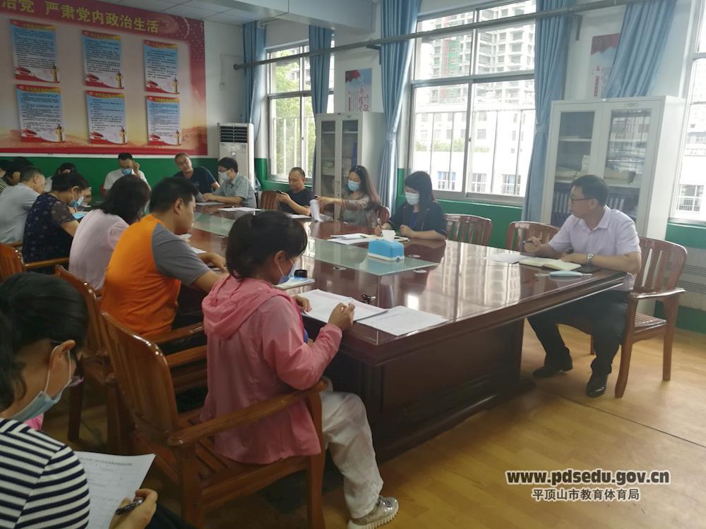 承载着人们的期盼,中招考试的脚步越来越近了,在冲刺的关键时刻,市十四中于7月3日下午在会议室召开了中招备考工作会议。校领导班子和全体九年级任课教师参加了会议。会议由副校长樊吕娜主持。