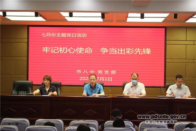 为庆祝中国共产党成立99周年,7月1日下午,市八中在学校尚德楼五楼报告厅举办“牢记初心使命,争当出彩先锋”七一主题党日学习教育活动。此次会议,由市八中副书记、副校长荆小辉主持,学校全体在职党员佩戴党员徽章参加。