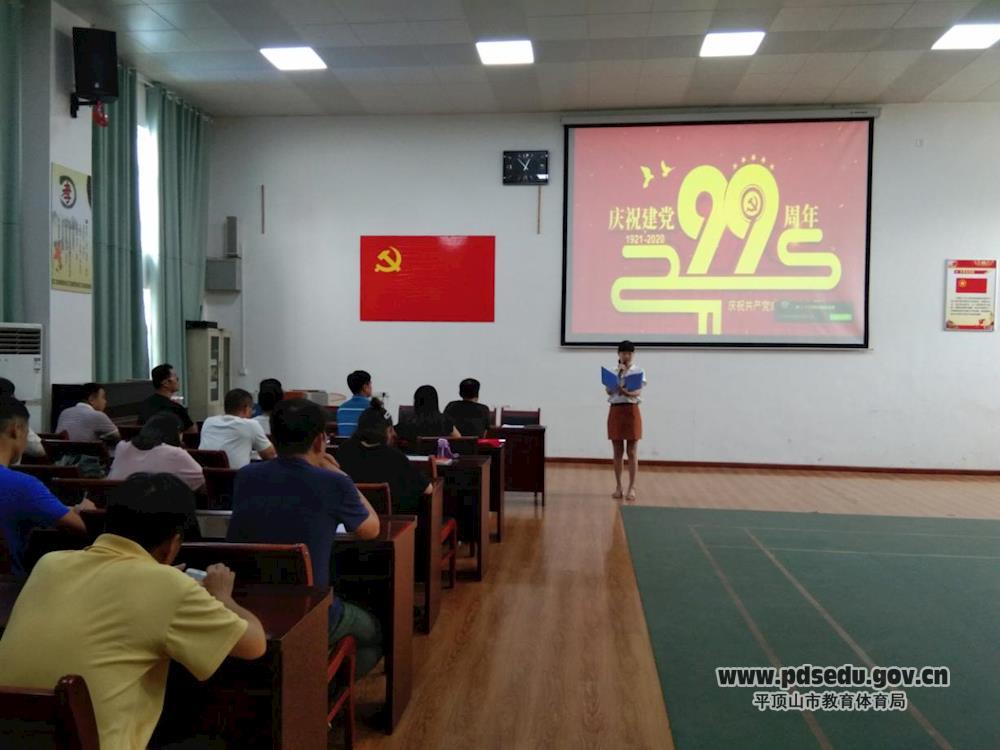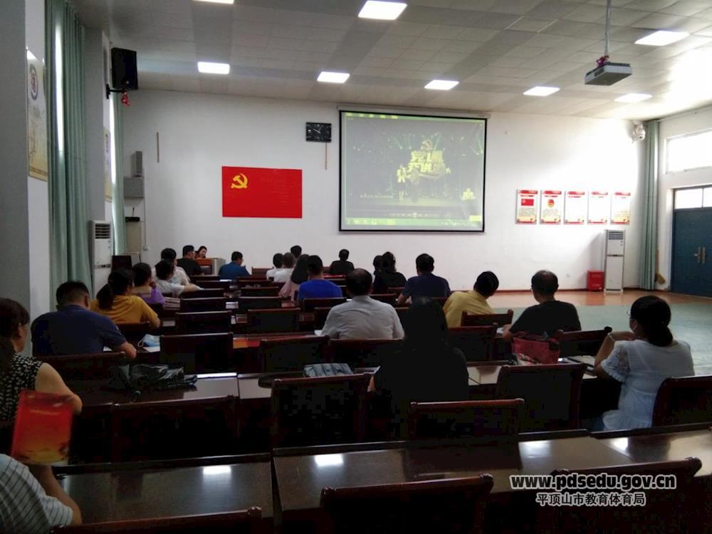 为庆祝中国共产党成立99周年,巩固强化主题教育,激励广大党员发挥先锋模范作用、求真务实干事创业的工作热情,7月1日下午,市十五中全体党员在多功能厅召开“牢记初心使命、争当出彩先锋”主题党日活动。会议由十五中党支部宣传委员、副校长陈全岭主持,全体党员佩戴党员徽章参加会议。