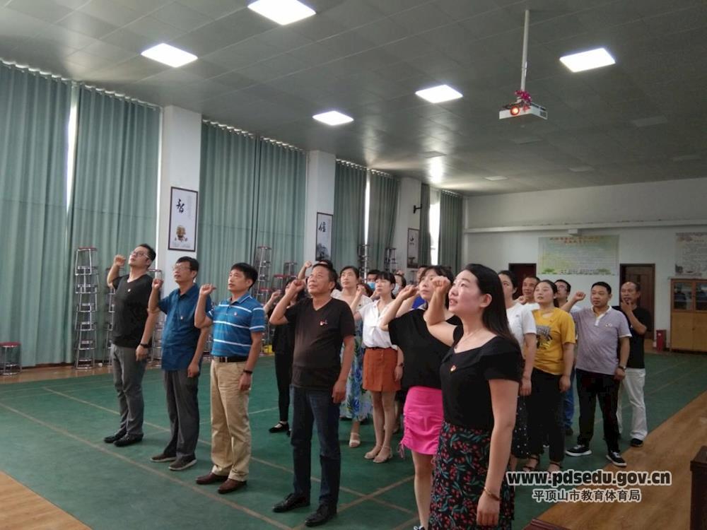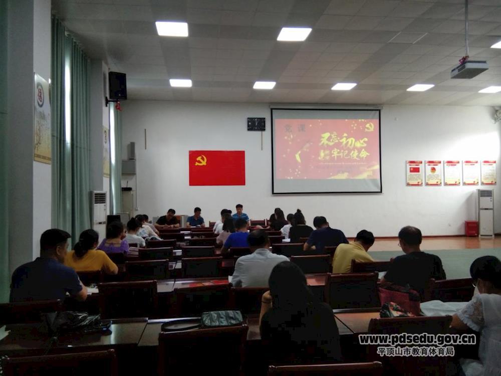 接着校长兼党支部书记张建军带领全体党员学了习近平总书记在“不忘初心、牢记使命”主题教育总结大会上的讲话,上了一节《牢记初心使命、争当出彩先锋》的党课。张建军指出,我们广大党员教师要加强理论学习,提升政治素养,对照先进找差距,学习榜样促成长,党员干部要守初心、担使命,树牢“四个意识”,坚定“四个自信”,坚决做到“两个维护”,用深厚的爱国情怀、教育情怀献身教育事业。