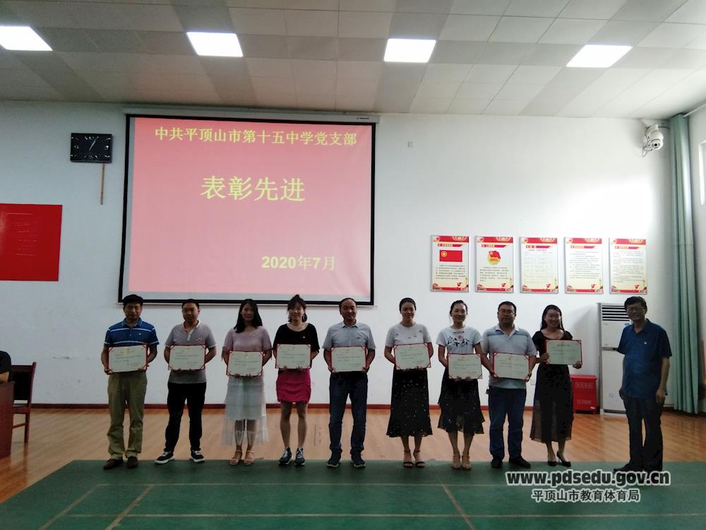 7月3日,市十五中党支部组织党员举行了以“牢记初心使命、争当出彩先锋”为主题的《红色诗词朗诵比赛》,潘靖华、李青好两位党员用饱满的热情为庆祝党的生日献礼,声情并茂的朗诵博得阵阵掌声。
