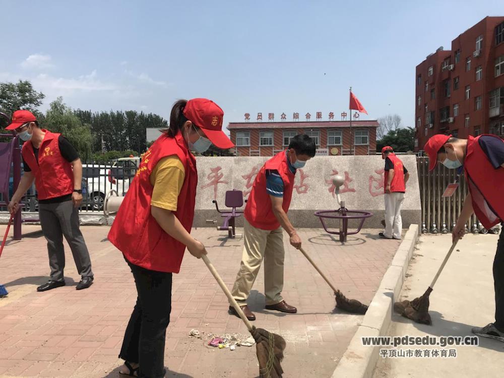 7月6日中午,党员参加志愿服务活动,到平东社区服务站打扫卫生。