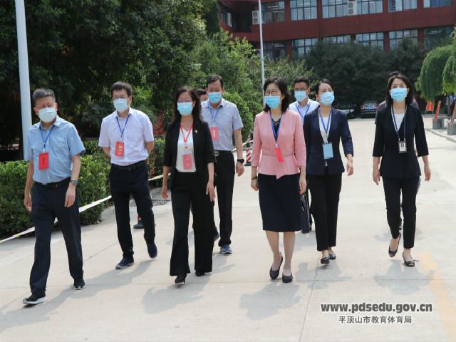 7月8日上午,省教育厅党组成员副厅长毛杰、市教体局党组书记局长邱红标、局党组成员副局长尹卫东、市招办主任朱亚军一行莅临市实验高中视察高考情况,市实验高中校长贾晓燕、书记鲁文彬陪同视察。
