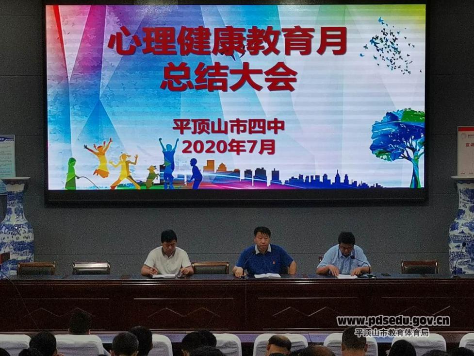 7月14日上午,市四中在校讲座厅召开心理健康教育活动月总结大会。班子成员及全体教职工参加会议。