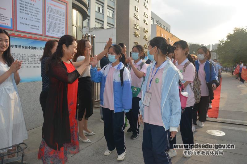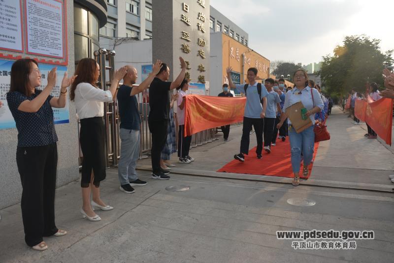 到了要说再见的时候,市四十中领导带领九年级全体教师盛装出席,带着美好祝愿夹道欢迎今日主角——九年级全体毕业生。