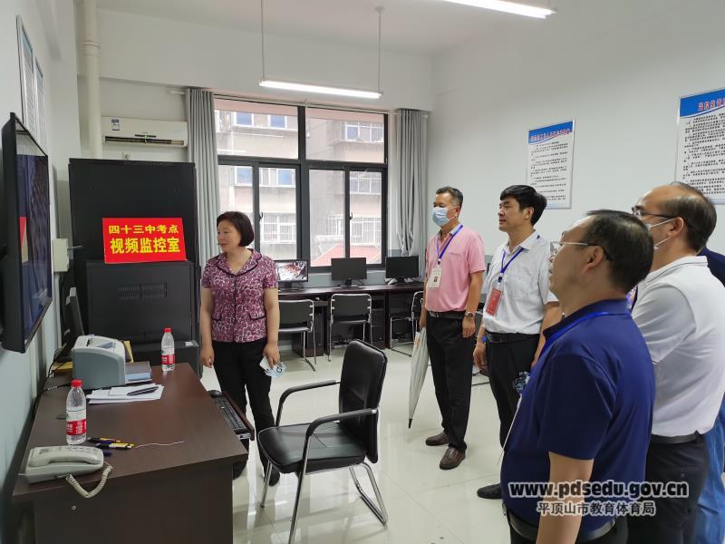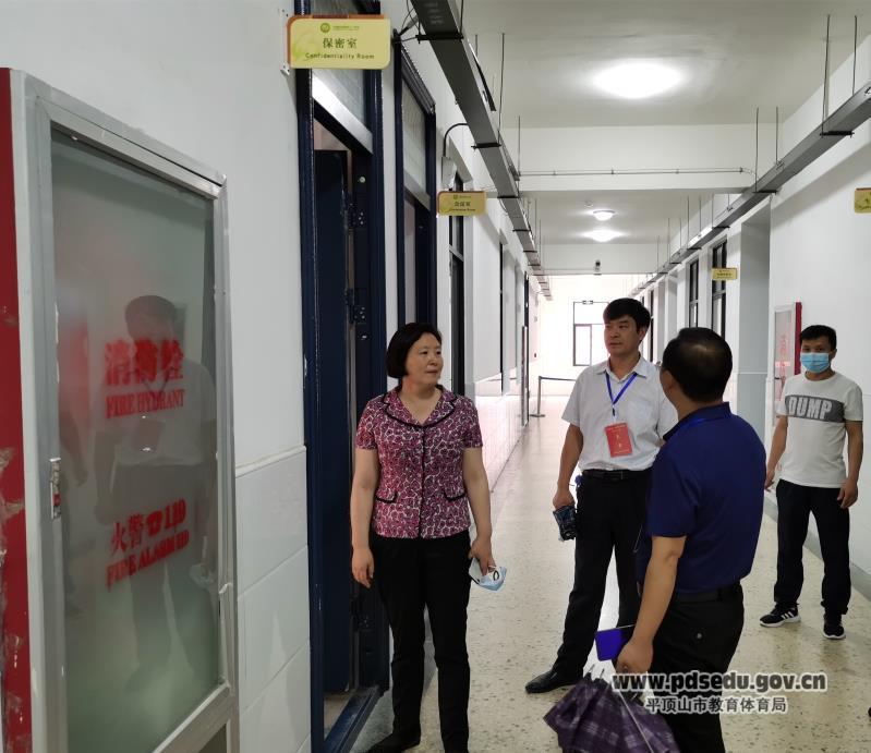 2020年7月14日下午,市教育体育局党组成员、副局长苏红英冒雨来到市四十三中视察中考考点准备情况。