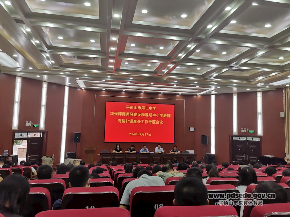 为大力弘扬廉洁从教、爱岗敬业精神,进一步加强“立师德、铸师魂、正师风、强师能”师德师风教育,7月17日上午,市二中在阶梯教室召开“加强师德师风建设和暑期中小学教师有偿补课查处工作”专题会议,并举行拒绝有偿补课承诺签字仪式,全体教职工参加了活动。