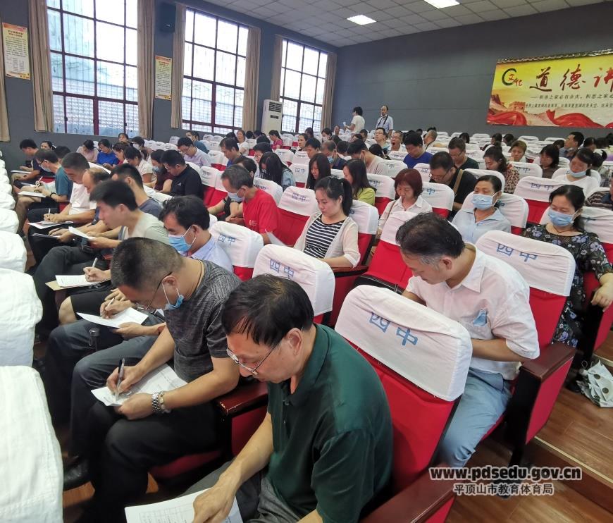 为进一步加强师德师风建设,规范教师从教行为,塑造高素质教师队伍,7月16日下午,市四中在校讲座厅举行2020年教师拒绝有偿补课承诺书签字仪式。班子成员和全体教职工到场参加。