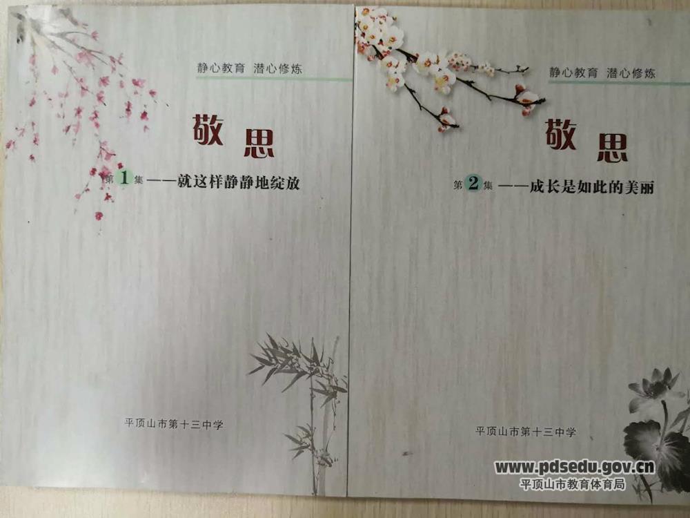 十三中学一直非常重视读书活动,经常开展校内读书及交流活动,并进行读书心得及论文评比,并把教师的教学论文、教学心得、教育故事等结集印刷了《就这样静静的绽放》《成长是如此的美丽》等文集供教师交流,语文组还组建了古诗文朗诵群。