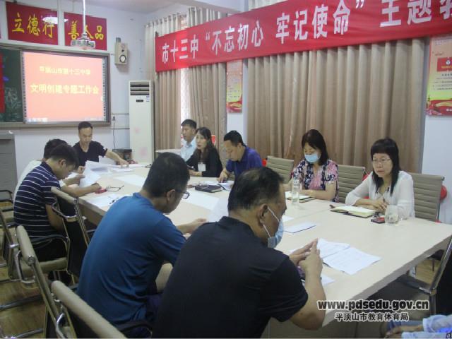 为深入开展文明城市创建各项工作,根据市教体局四创办和我校创建工作规划,7月23日上午,在市十三中小会议室召开了文明城市创建专题工作会,参会人员有校领导班子,各处室、年级组负责人和创建资料整理老师。