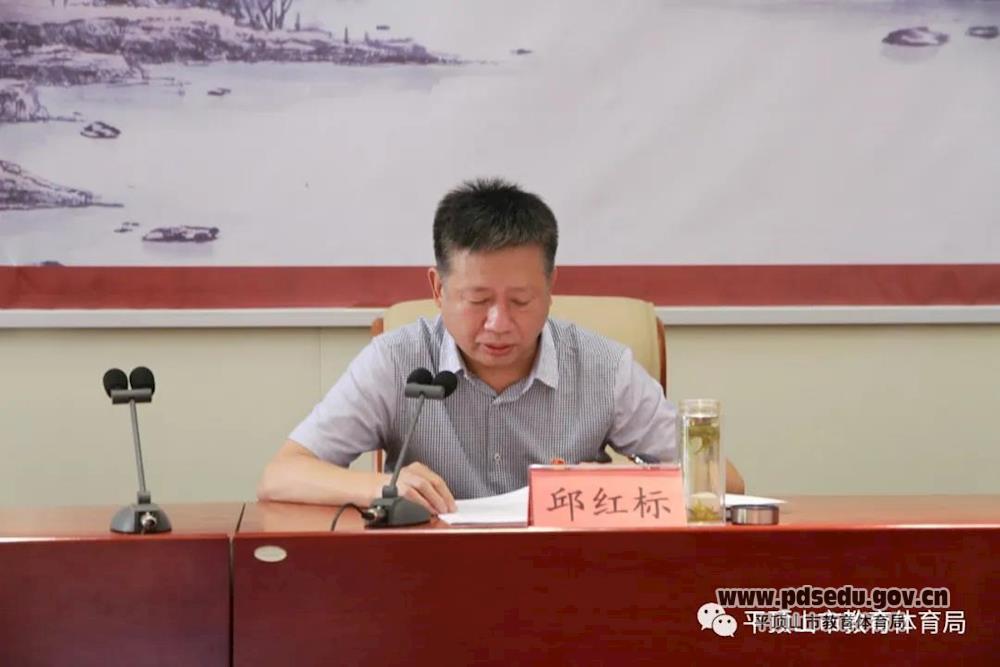 陈晓辉宣读《关于对平顶山市教育体育局党组集中开展以案促改工作进行监督的方案》。