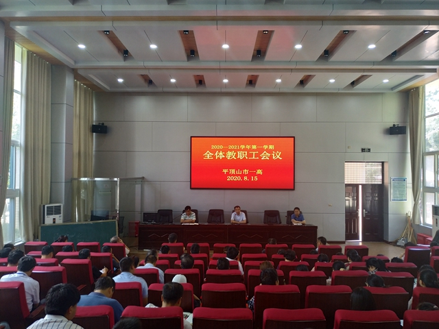 2020年8月15日,市一高在校阶梯教室召开2020-2021学年第一学期全体教职工会议,高一年级全体任课教师和所有行政管理人员出席会议。会议由副校长郭继方主持。
