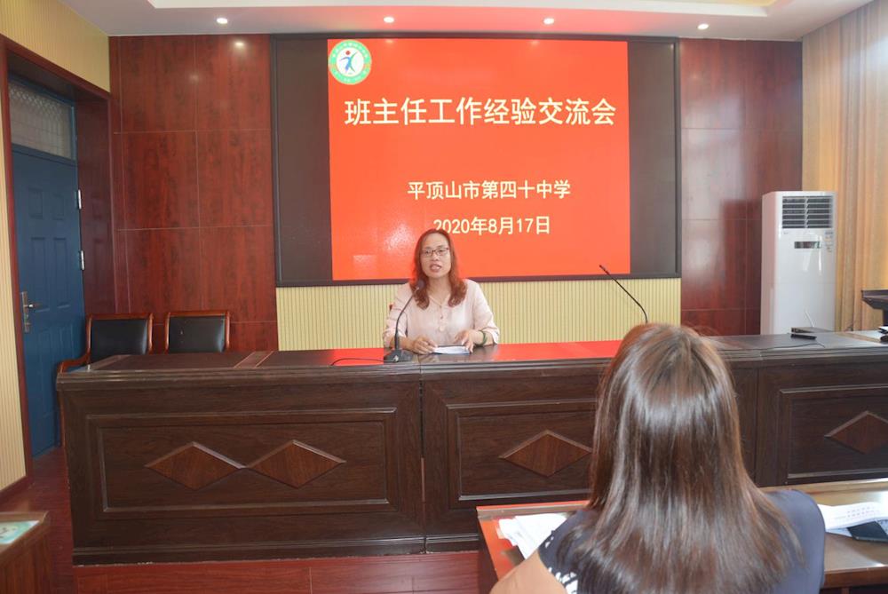 为深入加强班主任队伍建设,凝练优秀班主任管理经验,促进班主任专业成长。8月17日,市四十中在明道楼二楼会议室召开了班主任经验交流会,校长景艳伟出席会议,班子成员参会并担任评委,政教主任赵雪荣主持会议,全体班主任及35岁以下年轻教师参加会议。