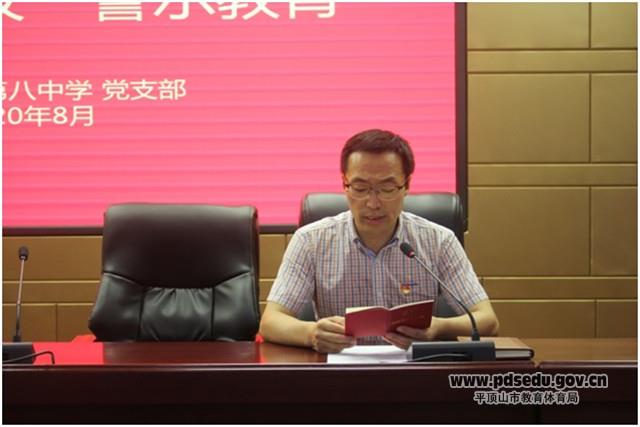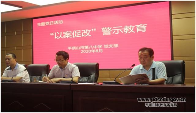 8月19日下午,市八中在五楼报告厅举行了“以案促改警示教育”主题党日活动。活动由八中党支部副书记、副校长荆小辉主持,全体党员及中层以上干部参加了活动。