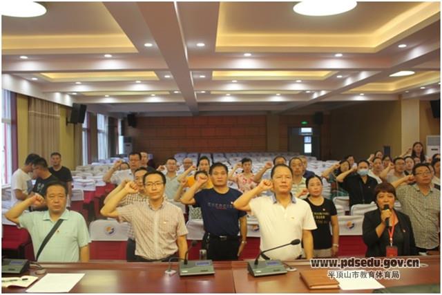 1.党支部书记、校长林亚南带领与会人员学习《中共平顶山市教育体育局党组关于组织开展以案促改专题学习讨论的通知》文件精神。