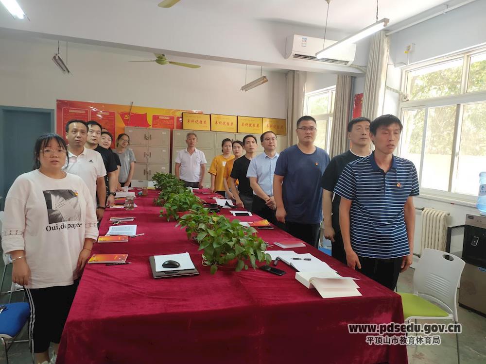 8月27日下午,市三高第二支部全体党员教师在高二年级开展八月份主题党日活动,会议由支部书记张晓辉主持。