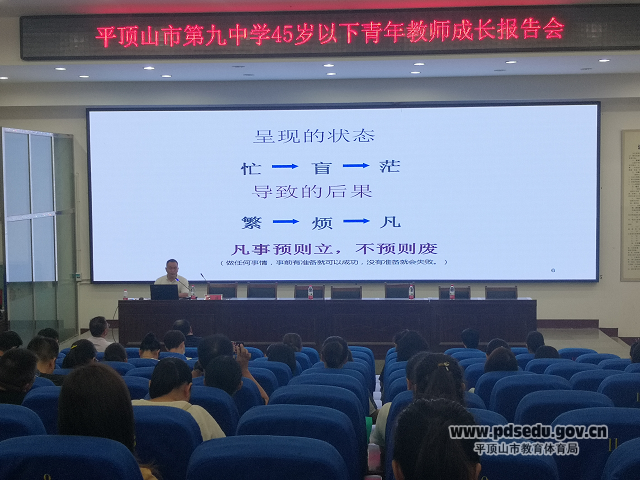 本次青年教师专业成长报告会为青年教师发展起到了良好的助推作用,为青年教师个人专业的提升和学校更高层次的发展发挥着积极作用。希望青年教师保持昂扬的精神状态和饱满的工作热情,努力做一名学生喜欢、家长认可、社会满意的人民教师,为实现品质九中贡献自己的一份力量,在九中教育这片沃土上历练成长,不负芳华!