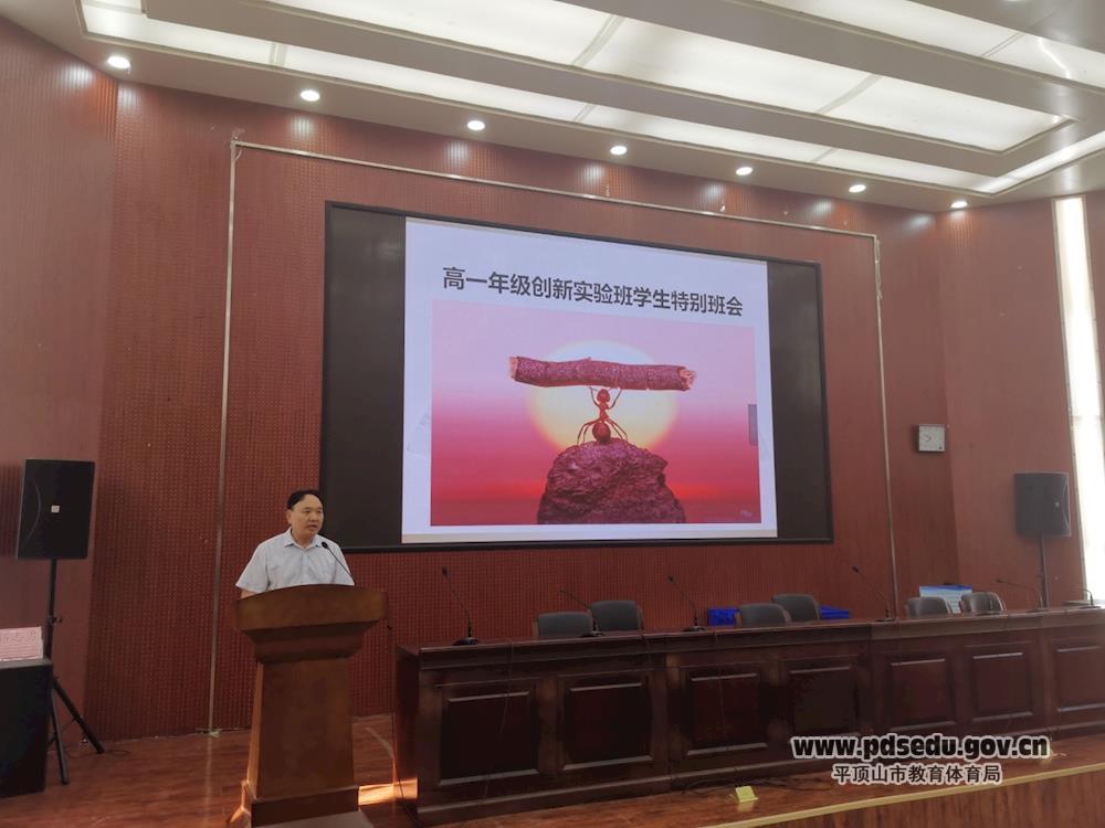 8月27日下午,高一年级在阶梯教室组织了一次特别班会,邀请河南省名师、学科技术带头人苏水彩老师,为创新实验班的学生集中上班会,对学生进行学法指导,给同学们定目标、鼓干劲,鼓励青年学生“共筑二中梦,再创新辉煌”。