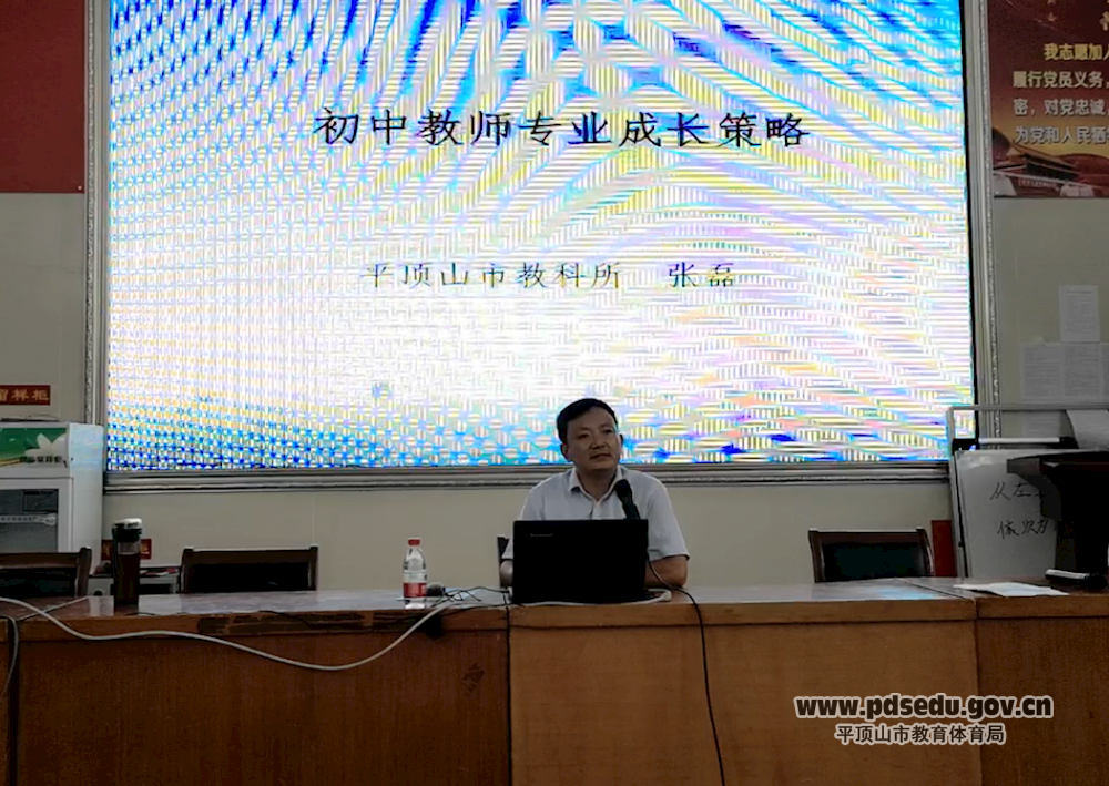 作为平顶山市中小学教育教学专家的张磊此次讲座的主题是《初中教师专业成长策略》,他从教师培训的目的讲起,谈到了教师的三项修炼----愿景修炼、学术修炼和心智修炼,再到教育本原问题的思考即:为何教?为谁教?教什么?怎么教?深入浅出的讲解引起了在场老师们对于教学的思考,解答了老师们在专业成长路上的困惑。