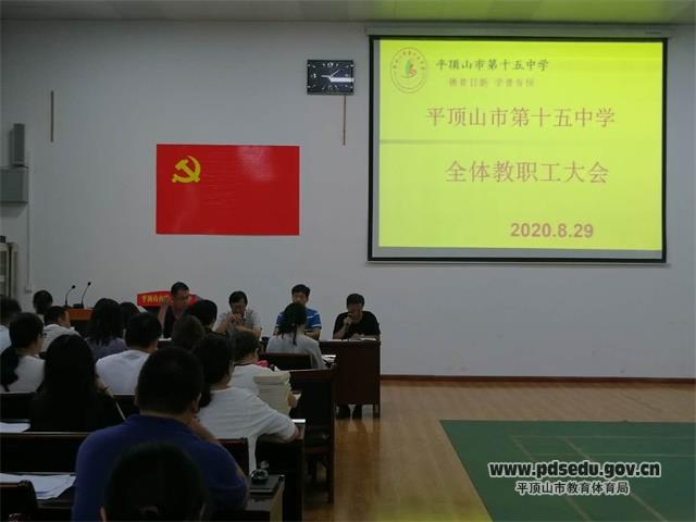 伴随着秋日金灿灿的骄阳和习习凉风,新一个学期已缓缓拉开大幕。市十五中于8月29日上午召开了2020-2021学年第一学期全体教职工大会,会上不仅对暑期工作进行了总结还对新学期的工作进行部署安排,并宣贯了十五中师德精神、教学和教研要求等。