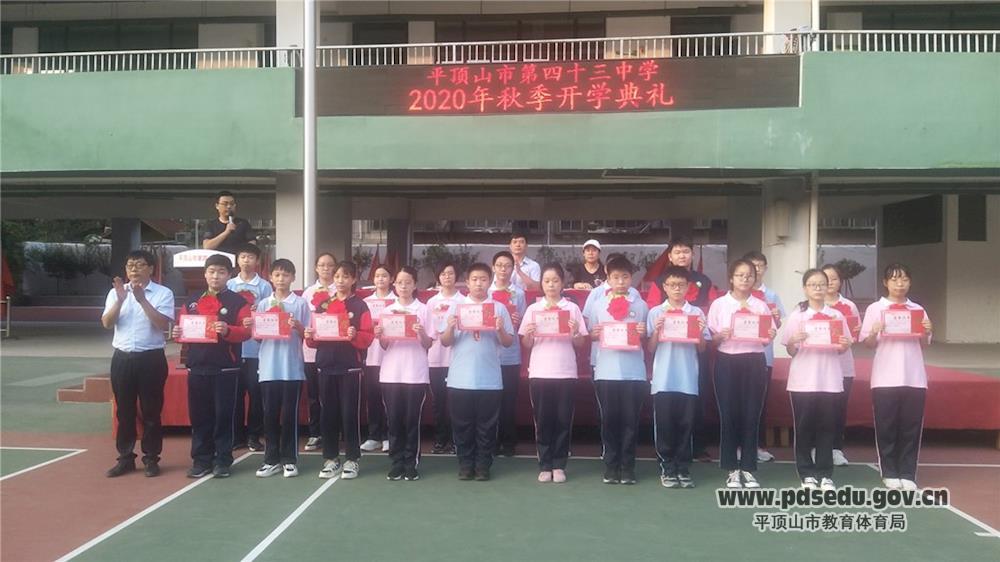 紧接着,校长助理师勇宣布上学期期末考试中获奖学生名单。副校长任建华宣读上学期三个年级荣获优秀班集体和先进个人名单。最后,副校长赵中锋对市四十三中狠抓校风校纪提出要求。