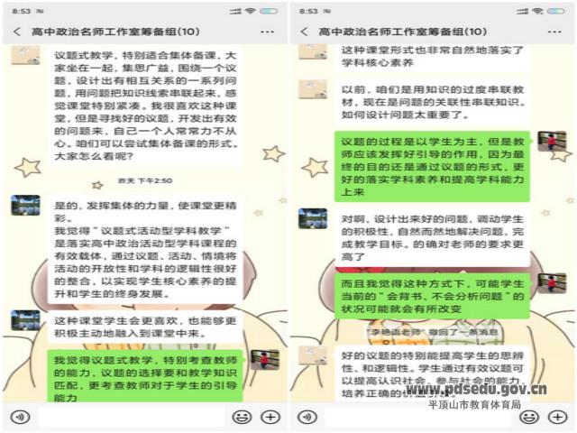 为更好地研究新课标理念下的高中思想政治学科课堂教学,促进学科核心素养的有效落实,8月28日下午,“李艳语高中政治名师工作室”聚焦“议题式教学”开展线上主题教学学习研讨活动。
