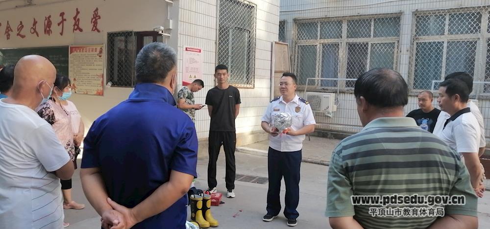 为了普及消防安全知识,增强消防安全意识,让学校管理人员进一步了解掌握火灾等突发事件的处理流程,提升处理突发火灾事故的能力。9月2日下午,市实验高中邀请了新华区董伟民教导员来学校指导微型消防站及培训工作。