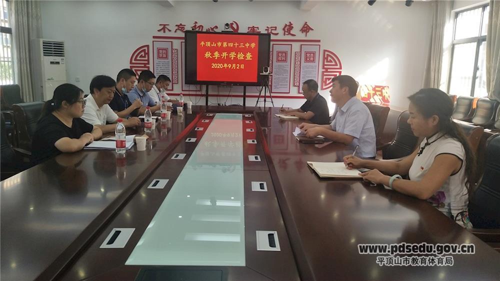 2020年9月2日下午,市教育体育局教育电视台台长李民、教育督导科科长刘翌秋,以及市纪委监委驻市教育体育局纪检监察组的领导一行五人对市四十三中开展新学期检查指导工作。市四十三中校长闫晓飞和班子成员陪同检查。