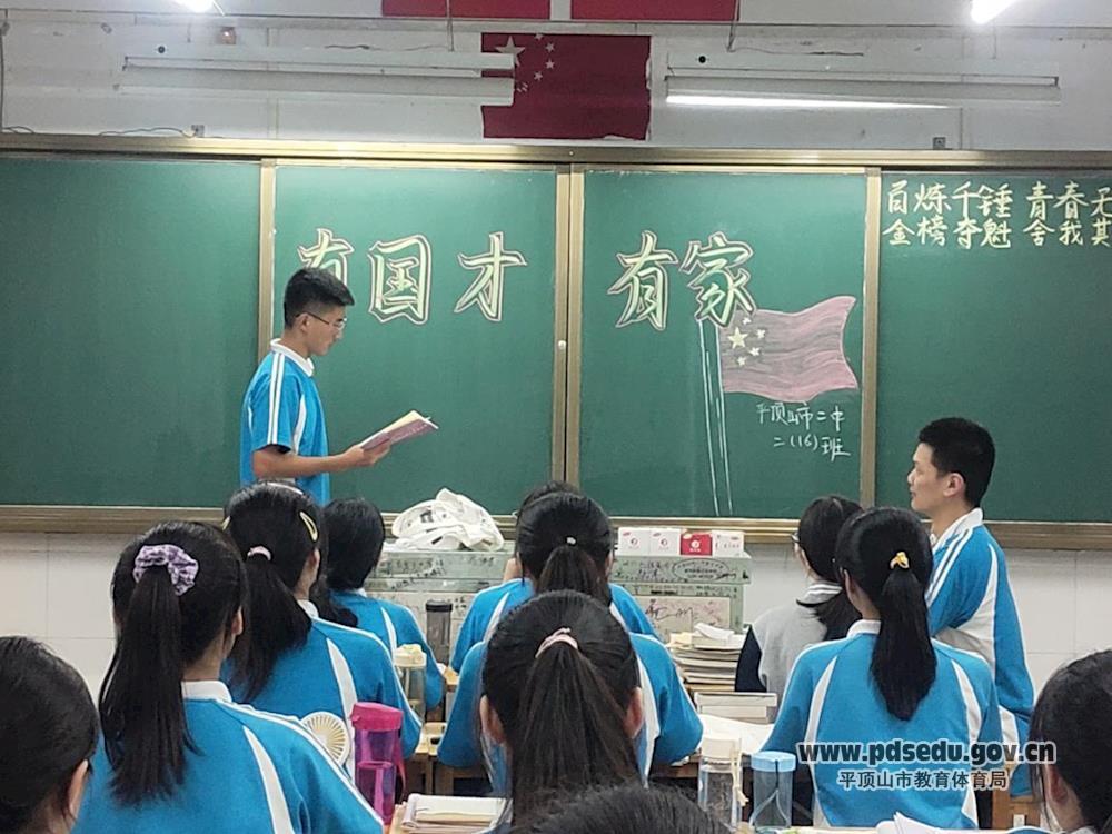 为加强爱国主义教育,纪念中国人民抗日战争暨世界反法西斯战争胜利75周年,9月3日晚,市二中组织全校班级召开了“有国才有家”主题班会。
