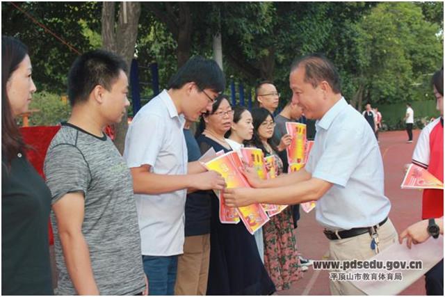 教师代表赵强进行了发言,他代表全体教师承诺:在新的学习一心一意备好课,全心全意上好课。关心每一位学生,关注每一个希望,勤恳育人,兼爱立人。